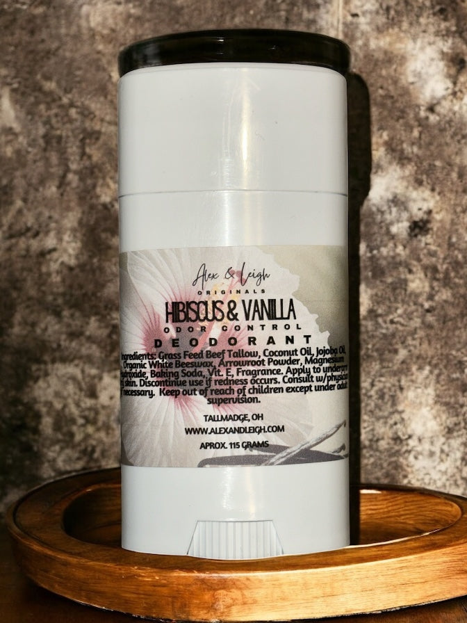 Ingredients: Grass Fed and Finished Beef Tallow, Coconut Oil, Jojoba Oil, Organic White Beeswax, Organic Arrowroot Powder, Magnesium Hydroxide, Aluminum Free Baking Soda, Vit E Oil & Fragrance/Essential Oil